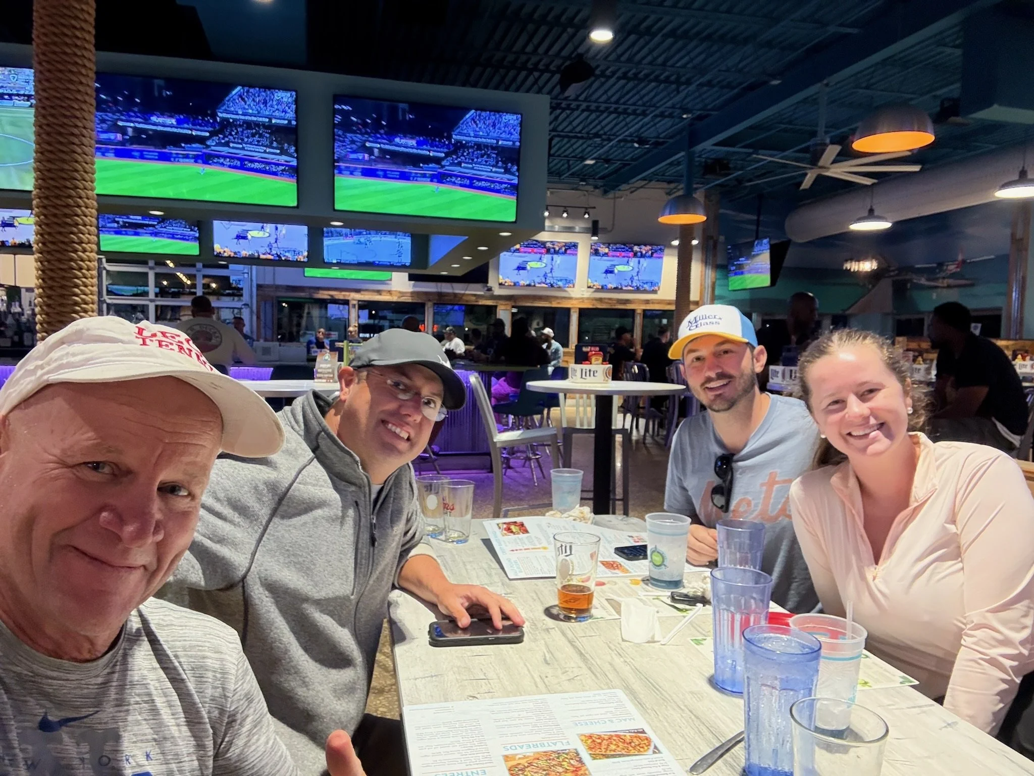 Kevin Record (left) shares time with former Leon High School tennis player Brad Williams, son Josh Record and future daughter-in-law Maddie. Photo credit: Kevin Record